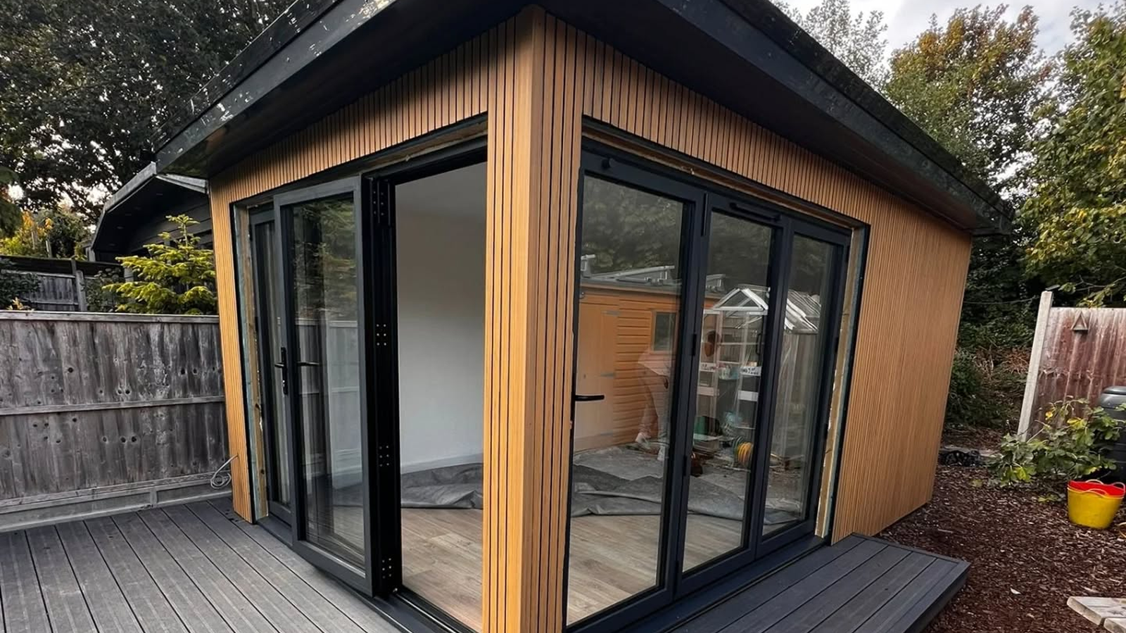 He transformed the house inside and out with all black windows and bi-fold door, and the garden room all matching too,